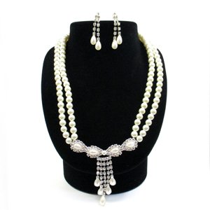 【ブライダル】パールピアス&ネックレスセット S2-002 ホワイト/シルバー [J2-S2002C3]