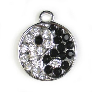 ラインストーンチャーム 陰陽 ブラック×クリスタル 【1ヶ入】 [J1-LINY1C2]